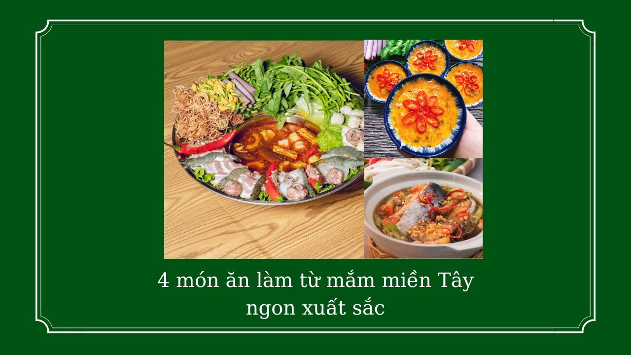 Những món mắm miền Tây ngon nức tiếng nổi danh khắp cả nước là một trong những nét đặc biệt của ẩm thực vùng sông nước.. Mắm nơi đây mang một hương vị đặc trưng độc lạ, nhờ sự khác lạ đó nên mắm được người dân chế biến ra nhiều món ăn độc đáo và khiến thực khách không bao giờ quên khi được nếm qua dù chỉ một lần.