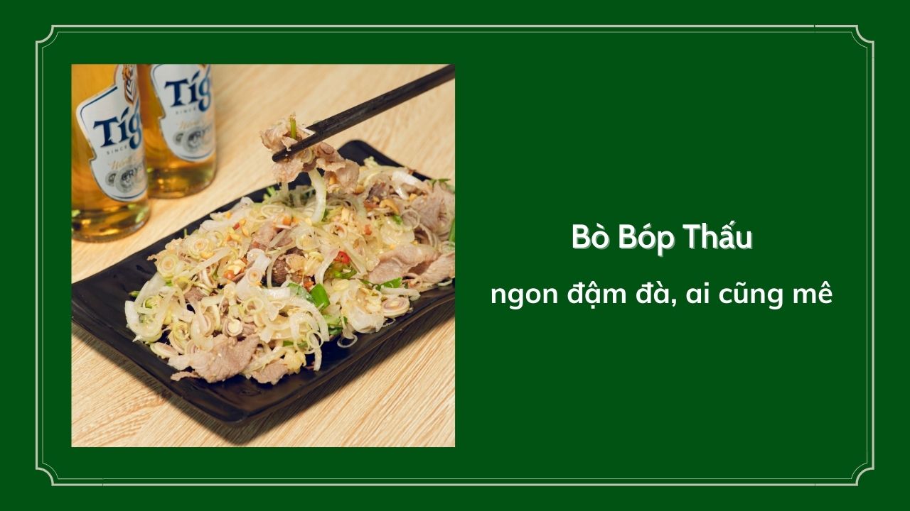 Bò bóp thấu là sự kết hợp giữa các hương vị ngọt mềm của thịt bò, thanh mát của các loại rau khiến ai ăn cũng thích thú. Chỉ với vài bước thực hiện đơn giản, bạn đã có thể thu về thành phẩm món bò bóp thấu đậm vị không hề bị ngán mời cả nhà. Cùng vào bếp với Ba Tài Quán nhé!