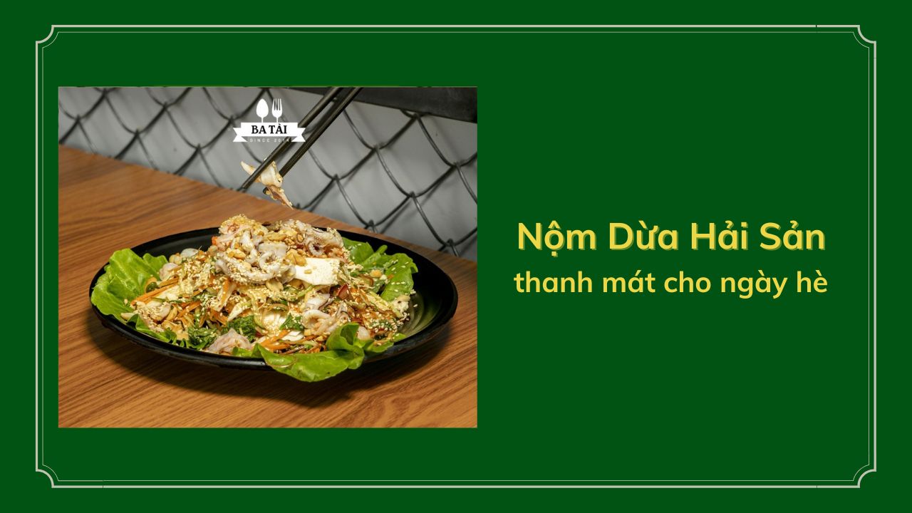 Món nộm dừa hải sản là món ăn đặc sản của người miền Tây, thường được dùng làm món khai vị với vị giòn giòn, chua chua ngọt ngọt hợp khẩu vị với nhiều lứa tuổi. Cách làm món ăn này rất đơn giản, với các nguyên liệu dễ kiếm bạn đã có ngay món ăn ngon và dinh dưỡng cho cả gia đình.