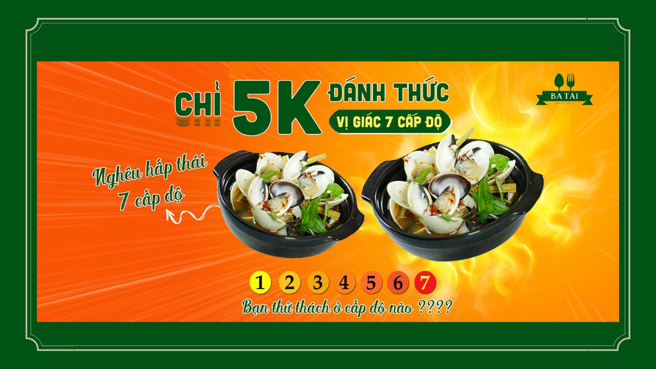 Phấn khích chưa! Nhanh nhanh đến Ba Tài tham gia thử thách thố nghêu hấp Thái chỉ 5k nóng hổi, thỏa cơn thèm bạn nhé!