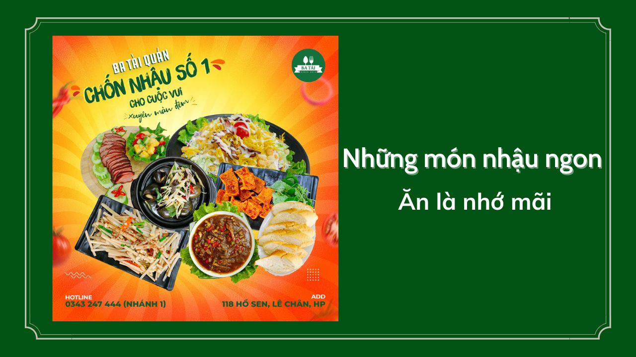 Nếu bạn đang tìm kiếm địa điểm lý tưởng để nhậu thì Ba Tài Quán là nơi chắc chắn bạn nên tới. Ba Tài Quán – một địa điểm từ lâu đã được lòng dân Hải Phòng, là nơi mỗi khi nghĩ đến một vài ly bia hay muốn cà kê với anh em bạn bè sẽ nghĩ ngay tới. Chuyện vui không thể thiếu một chút cồn nhẹ, đến Ba Tài thử các loại bia tươi, thả ga các món ăn miền Tây, rôm rả câu chuyện cuối ngày.