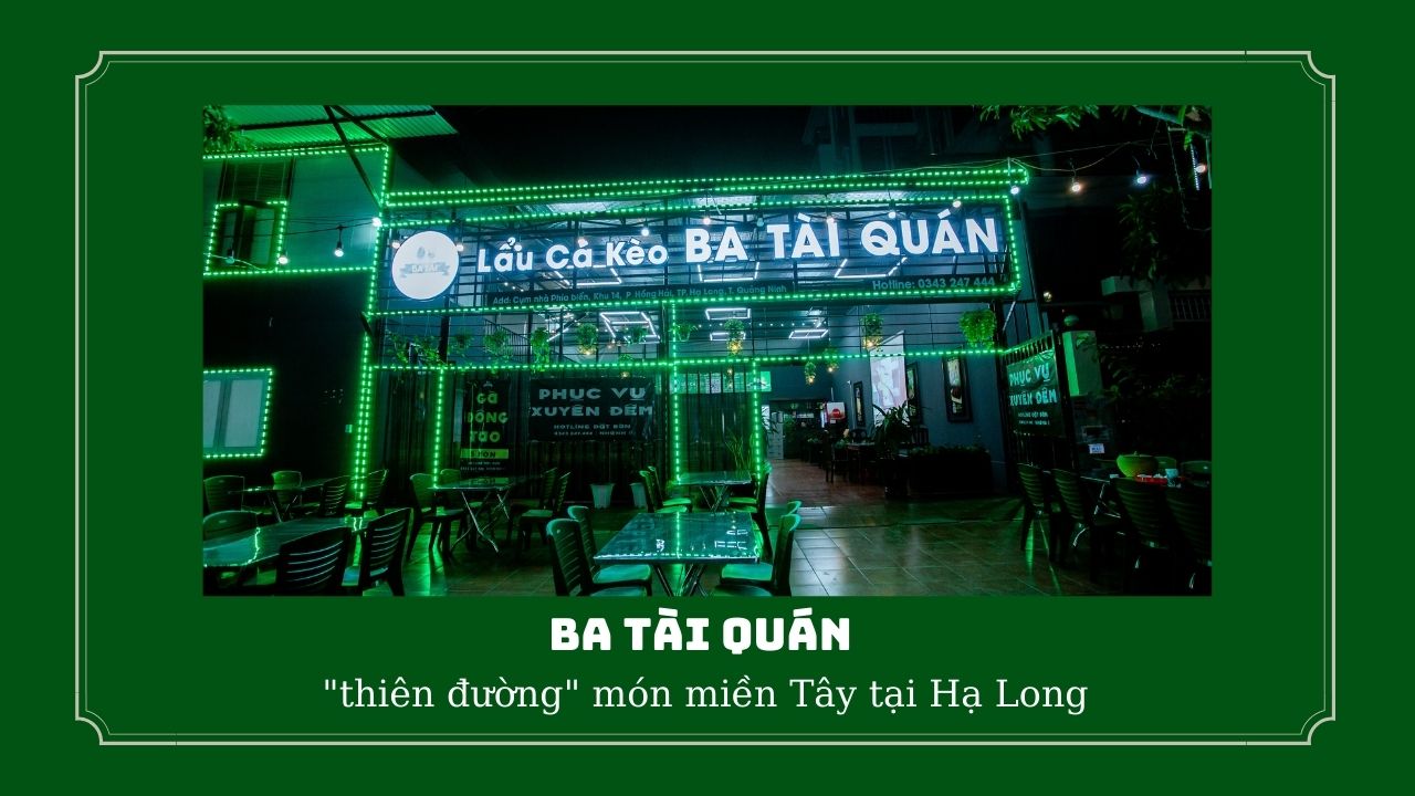 Ba Tài Quán hướng tới sự bình dân, thân thiện, các món ăn được chế biến dưới bàn tay của đầu bếp miền Tây chính gốc nhiều năm kinh nghiệm. Để đánh giá chất lượng món ăn có lẽ còn tùy thuộc vào khẩu vị, cảm nhận của mỗi người, nhưng nếu mê các món ăn miền Tây sông nước và tìm một điểm tụ tập ăn uống rộng rãi, dễ chịu thì Lẩu cá kèo Ba Tài Quán 36 Hải Phượng là gợi ý không tồi.