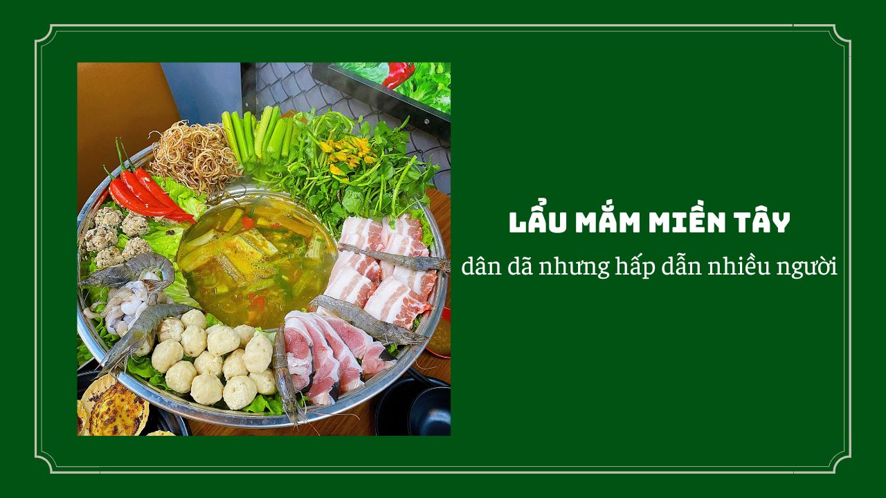 Mắm là một nét tiêu biểu trong văn hóa ẩm thực miền Tây Nam Bộ. Món mắm dân dã đã được người dân nơi đây biến hóa để cho ra nhiều món ngon khác nhau, trong đó có lẩu mắm miền Tây.